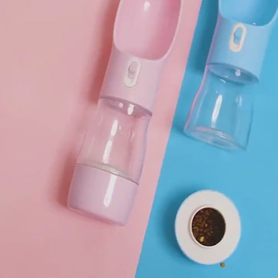 UN:Il s'agit d'une bouteille de voyage à double usage qui vous permet de nourrir et d'hydrater votre animal de compagnie n'importe où de manière pratique.