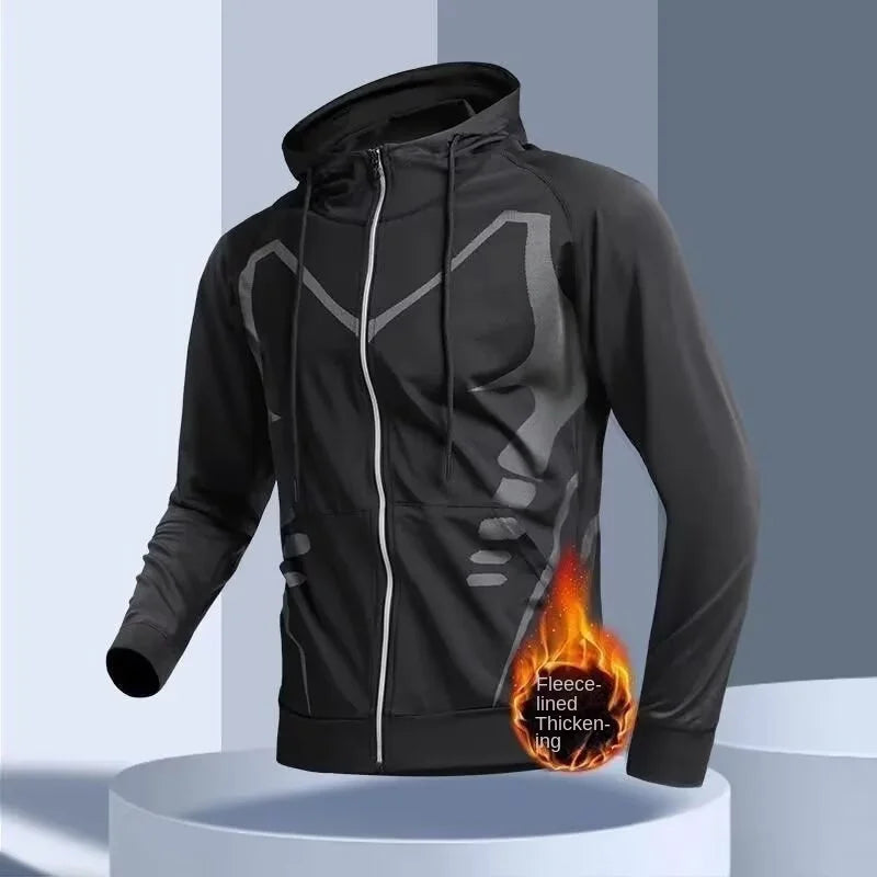 Veste de running d'hiver pour homme - Vêtements de sport d'entraînement coupe-vent et imperméables avec isolation en peluche